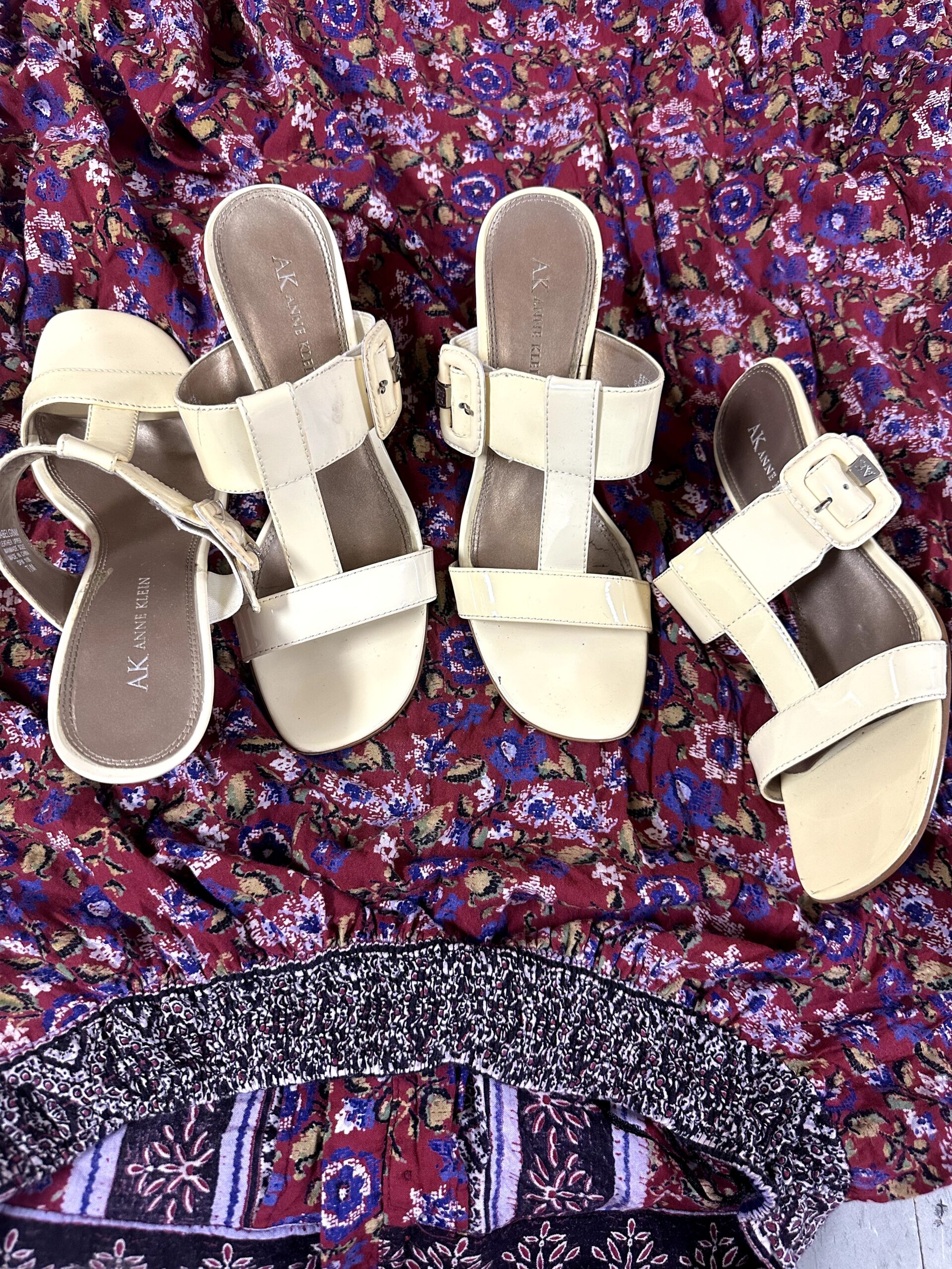 Vintage cream kitten sandal. Heel - Approximately 2 inches. Gently used. Size: 7 & 7.5